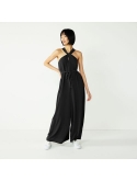 Women's Sleeveless Halter Tied Backless High Waist Belted Wide Leg Pants Elegant Jumpsuit Rompers