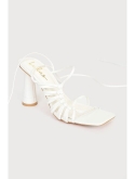 Lulus Exclusive! Always be one step ahead when it comes to looking chic with the Lulus Zindy Mango Lace-Up High Heel Sandals! Sleek faux leather shapes a square toe upper while two slender toe straps come together to create a knotted vamp detail along the outstep before finishing off with a crossing top strap. Two long ties sprout from the sides to wrap and tie around the ankle for a trendy look! Sculpted block heel.