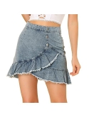 Mini length for a stylish design shows your slim legs, ruffle hem add some highlights to your look.