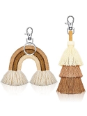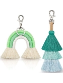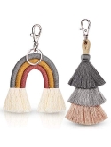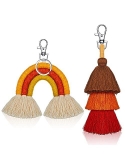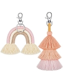 Due to the limited shooting conditions, there may be color difference between pictures and real objects; Tassel keychain sets: you will get 1 piece of mini boho rainbow keychain and 1 piece of boho pom pom tassel handmade weaving key chain in a consistent color; Designed with quality lobster clasp, the handmade macrame keychain set is both practical and attractive