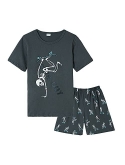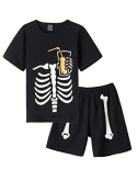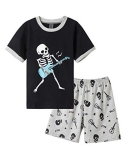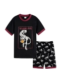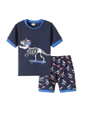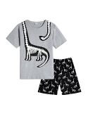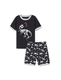 Feature: Boys pajamas top with short sleeve,classic crew neck ,glow in dark dinosaur print pattern,shorts with elastic waistband make this pajamas easily wear on or off.