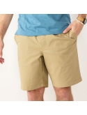 Zipper fly 4-pocket Regular fit Approximate 10-in. inseam Flat front Cotton, spandex Machine wash Imported