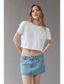 A throwback denim mini skirt from UO. Cut super short with a low-rise. Complete with a zip fly and contrasting stitching all around.
