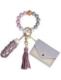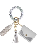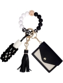 Beaded silicone bracelet: Made of elastic silicone material and PU leather wristlet bracelet holder tassel, all the beads are connected by a double black elastic strap, durable.The beads are big,soft,sturdy and comfortable.it is lightweight. The keychain easy to open and use.