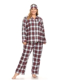 Very comfortable to touch and wear. 3-piece sleep set, long sleeve and long leg women pajama set and eye mask, breathable fabric for your comfortable sleeping.