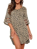 【Features】: The elegant sleepshirt is the perfect casual look with mesh panel patchwork that shapes a 3/4 sleeve. This cute nightgown is composed of stretchy and soft knit fabric that features loose hem, above knee length, and loose fit.