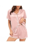 Great Gift: Women's two piece satin pajamas set, which is suitable for lounging and sleeping, pajama party, bridal party, girls day, loungwear and daily night wear. This short sleeve sleepwear set can also be the first choice as a gift to your girlfriends,your mom, your wife and friends on birthday, Valentine's Day, Christmas, New Year, Wedding and any other holidays.