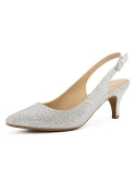 Divanne Slingback Pumps, Women's Pointed Toe Low Heel Sandals Slingback Strap Kitten Heel Pumps Evening Party Wedding Shoes