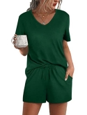 Trendy Style---The top has a classic V neckline. The cute top is perfectly complemented by shorts.Casual and sexy in daily life. The shorts have a trendy plain look and complement the rather simple T-shirt perfectly. The elastic waistband with drawstring is comfortable and gives you enough room to move. this 2 piece short set is the highlight of your wardrobe.