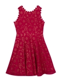 Casual strapless skater skirt dress with floral crochet detailing throughout.