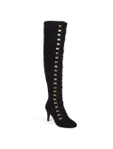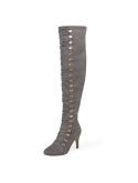 Add sizzling style to your look in over-the-knee high-heel boots by Journee Collection. Soft faux suede ( polyester, polyurethane ) uppers rise above the knees and highlight a vintage inspired lace-up design accented with metal detailing and a wide calf.