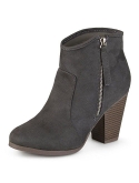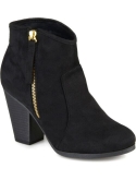 Show off chic style in heeled booties by Journee Collection. These boots feature premium PU suede uppers that rise to the ankles. Chunky Cuban heels and outside gold-tone zippers complete the look.