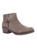 Full animal suede upper with inside zip and decorative tassel. Cushioning rubber with mesh lining.