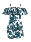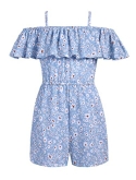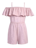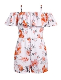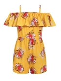 Girl off shoulder romper, spaghetti straps design, One piece jumpsuit with big ruffles decorated is very stylish. Elastic waistline make your kids very comfortable to wear.
