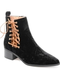 Boldly finish your favorite ensembles with the Aqua bootie by Journee Collection. These pointed-toe booties feature soft crushed velvet fabric with a lace-up design at the ankle.