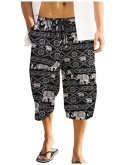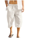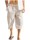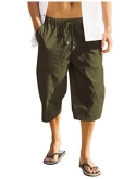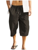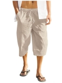Harem Capri Pants --- The Casual Linen Trousers with excellent patchwork wide leg design, stylish hip-hop style, loose fit, match with t-shirts, shirts, and flats for a casual summer look.