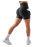Peach Butt Lifting Workout Shorts with Pockets: Two side pockets, V seam back, Sexy booty gym shorts with pockets, Figure enhancing athletic short