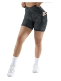 Crossover High Waisted Biker Shorts: Sexy slimming criss cross v waist, Tummy control squat proof cycling shorts, Supportive ribbed overlapping waistband, Pass the squat test