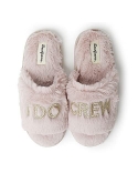 SLIDE-ON DESIGN: Dearfoams Bridal Slide-On Slippers are cute, cozy, comfortable and sure to put a smile on your face. These slippers are perfect for you and your crew to slide-on before the big day and capture some Instagram-worthy pictures!