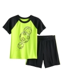 2-piece set includes: tee & shorts Tee: crewneck, short raglan sleeves, sporty graphics Shorts: elastic waistband 33% recycled polyester, 67% polyester Machine wash Imported Contains recycled polyester