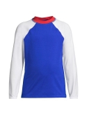 A bold colorblocked print makes this boys' Lands' End swim rash guard a stand-out choice.