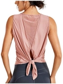 Tie back sleeveless shirt, it can tie in a knot to make more snug around the waist or hang down for loose fit and flowy looking in the front