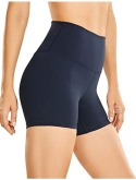 Workout spandex shorts with anti-drop high rise waistband and hidden pocket for keys, cards and so on.