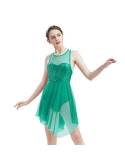WOMEN LYRICAL DANCE COSTUME -- Unique women lyrical dance costume mesh tulle leotard dresses. Elegant shiny sequin sleeveless bodysuit, adult lyrical dance dress leotard asymmetrical power mesh skirt performance ballet dancewear. Flowy lyrical dance dress one-piece, contemporary modern dance costume
