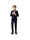 Boys 5 pieces vest set to include single breasted jacket, fully lined vest, flat front pants, long sleeve dress shirt and neck tie or bow tie