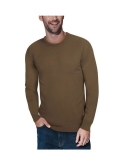 Breathable classic crewneck sweater for everyday comfort. Regular fit Soft hand feel Size large is approx. 28" long from high point shoulder to bottom hem Nylon, Viscose, Polyester Dry Clean Imported
