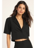 Lulus Exclusive! No matter what type of event you RSVP to, look the most stylish with the Lulus Posh Company Ivory Cropped Short Sleeve Blazer! Sleek woven fabric shapes this blazer with a collared neckline, notched lapels, and short sleeves. A wide-cut bodice boasts a decorative welt pocket and a single covered button closure before ending at a seamed cropped hem. Pair with the matching pants for a complete look!