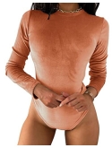FEATURES: High-quality slim fit, New high-grade Velvet fabric, Crew Neck, Long sleeves, Solid color, Snap crotch, Very stretchy, Thong Bodysuit Tops, Leotard Bodycon jumpsuit. With the unique luster of velvet, it shows your charming figure and self-confidence.