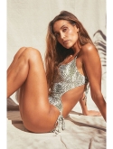 Lulus Exclusive! It'll be a true summer romance with the Lulus Sandy Love Green Tropical Print One-Piece Swimsuit! Sleek stretch knit, with a bright and colorful floral print, shapes a scoop neckline, adjustable spaghetti straps, removable padding in the bodice. A fitted silhouette continues to cheeky bottoms with slender tying straps at the sides. Turn around to reveal a sexy, open back with a tying accent. PLEASE NOTE: Swimwear returned without the hygienic liner is non-refundable.
