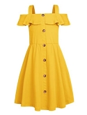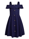 Cute and refreshing casual style,summer ruffle sleeveless backless strap dress,front button design,a-line silhouette,no lined..