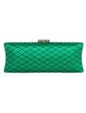 W 25, H 10, D 2 cm (W 10, H 4, D 1 inches) Retro satin clutch bag with an elegant beaded pattern. Rigid shape and rhinestones design. Fully lined inside. Comes with a detachable shoulder strap.
