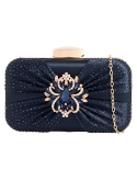 W 19, H 11, D 5 cm (W 7, H 4, D 2 inches) Classic satin clutch bag with brooch on the front. Has a compact shape and is made of high quality satin. Interior lined. Comes with a detachable shoulder chain strap.