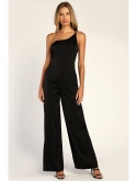 From date nights to dancing, the Lulus Flirty Femme Black Satin One-Shoulder Wide-Leg Jumpsuit is the perfect pick for a variety of occasions! This alluring jumpsuit is sure to make you feel luxurious with its sleek woven satin composition that shapes a princess-seamed bodice, a one-shoulder neckline, and two adjustable spaghetti straps. A high, fitted waist tops breezy wide pant legs that fall to ankle-grazing hems. Hidden side zipper/clasp. Pair with strappy heels for a look that was meant to be shown off!