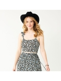 Squareneck Flutter sleeves Cropped fit Unlined 17-in. length from shoulder to hem Back elastic waistband Back-tie detailing Rayom Machine wash Imported