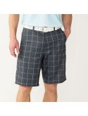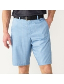 Plaid pattern Moisture-wicking fabric keeps you dry and comfortable 4-pocket Zipper fly 11-inch approximate inseam Flat-front waistline Polyester Machine wash Imported