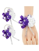 Package: Set of 2 wrist corsages. With high-quality wrist band for easy wear, elastic bead chain to fit in wrists in different size.