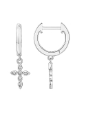 These gorgeous 14K white gold plated women's huggies with a sterling silver post and hinge closure are 13mm in diameter and measure 1.7mm wide. Dangling from the mini hoop earring is a 8x6mm oval starburst with AAAAA quality cubic zirconia.