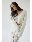 Easy pullover sweater from BDG made using recycled materials. Cropped above the waist in a relaxed fit with a v-neckline, dropped shoulders and long sleeves. Complete with exposed seams throughout and a rolled hem. Find it only at UO.