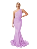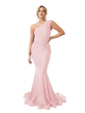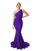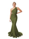 Dress DetailsOne Shoulder Mermaid Bridesmaid Dress Long Satin Formal Gowns and Evening Dresses,Empire Waist,Floor Length,Petite,Plus Size,Sleeveless,Backless/Open Back,Build in Bra,Ruched,Pleated,Piping.