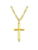 MAERIAL AND SIZE:These figaro chain cross necklaces are made of 316L stainless steel, 18k gold plated then. Each figaro cross is polished so they looks smooth and shiny, and comfortable to wear. Also, they are Hypoallergenic so they never irritate your skin or turn your neck green. Chain lengths are approx 18/20/22/24/26/30 inches, width 3.5mm. The cross size is approx 40mm X 25mm.