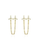 SUPERIOR QUALITYDouble Stud Chain Tassel Pierced Earrings in Sterling Silver 18K Gold Plated and Set with Four High Quality Zircons that sparkle to make you shine and add glamour to your everyday fashion wear.
