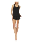 Flora by Flora Nikrooz Frances knit cami tap set has a top that hits at hip 24" long, has a v-neckline and pullover style. It has a knit pants that hit at low hip 6" from waistband, inseam of 3" and elastic waistband.
