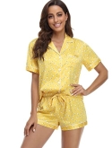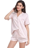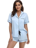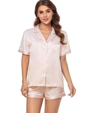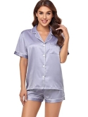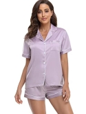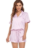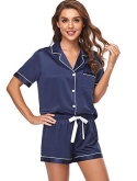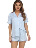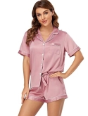 Made from a luxurious silk-like satin fabric, this pajama set is soft and lightweight, perfect for sleeping, lounging, or daily casual wear.