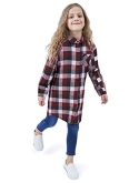 DESIGN: One left chest pocket, Long sleeve, middle length, midweight girls flannel shirts can be used as causal shirt or shirt dress for girls from little to big youth