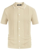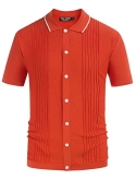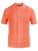 Features: Striped pattern, knitted basic tops, material wicks sweat, 100% pre-shrunk, ribbed hem and cuff, button closure, classic fit, short sleeve, well elastic. High stretch, no pilling and no wrinkling