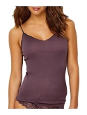 100% Cotton Imported Pull On closure Machine Wash Cotton camisole featuring a satin trimmed v-neckline, adjustable spaghetti straps, seamless sides and a laser cut hem Longer length gives versatility to wear on its own or layered